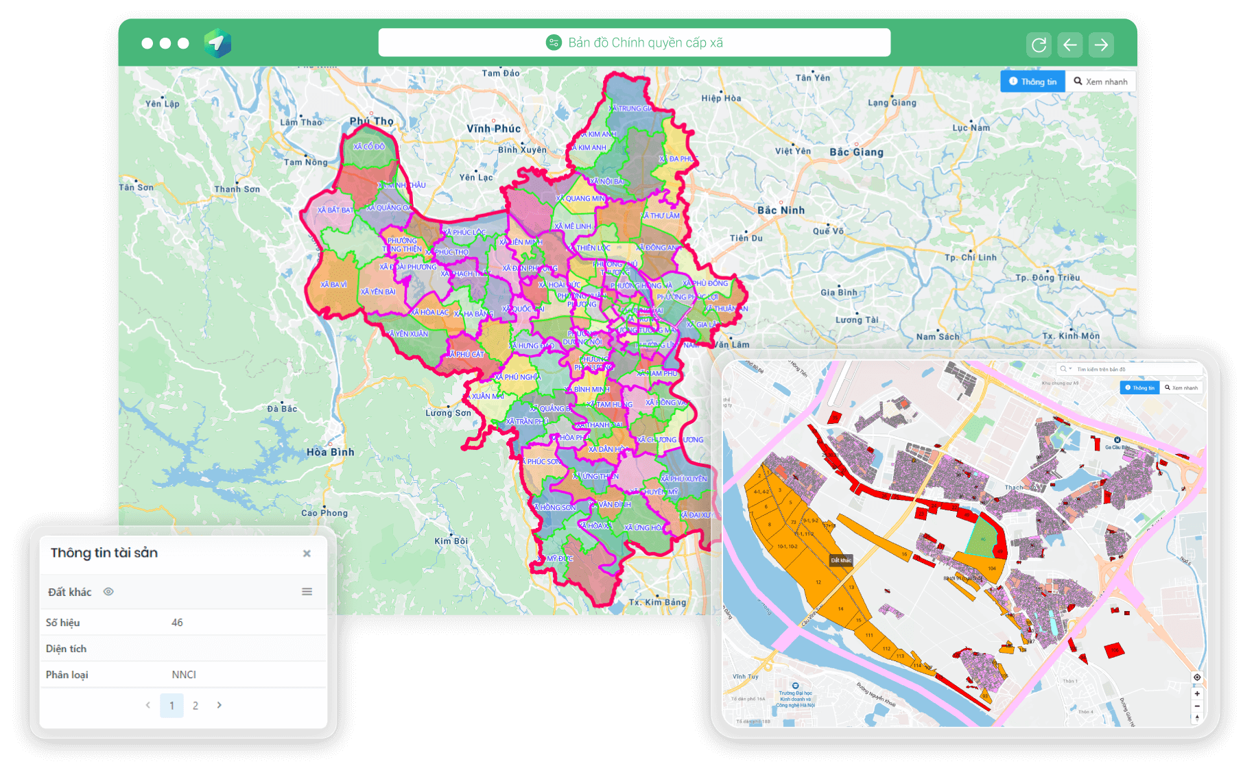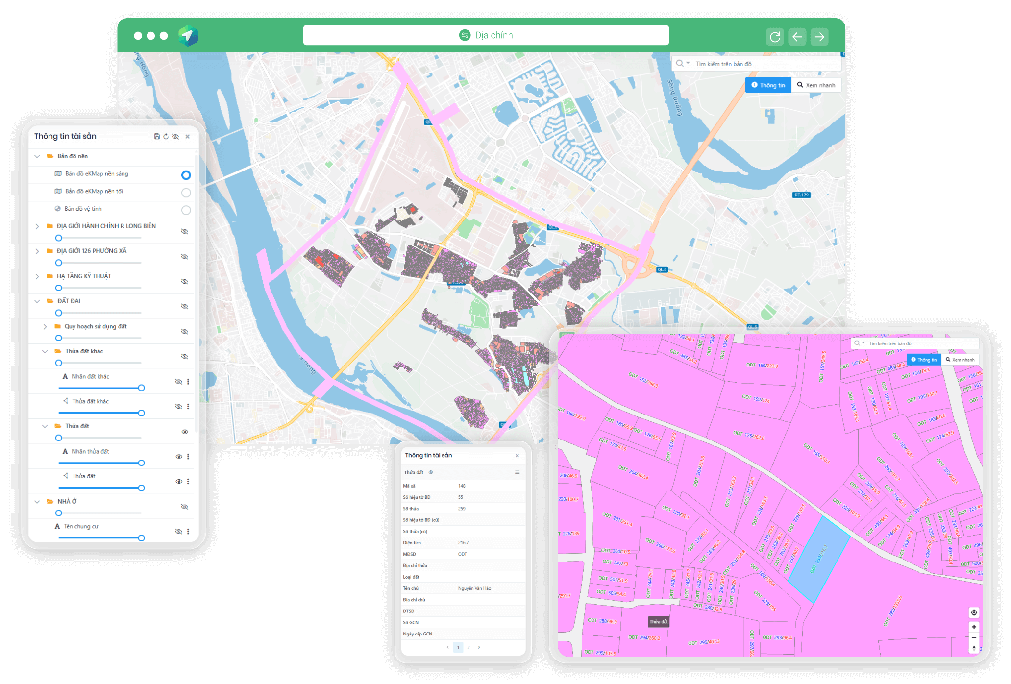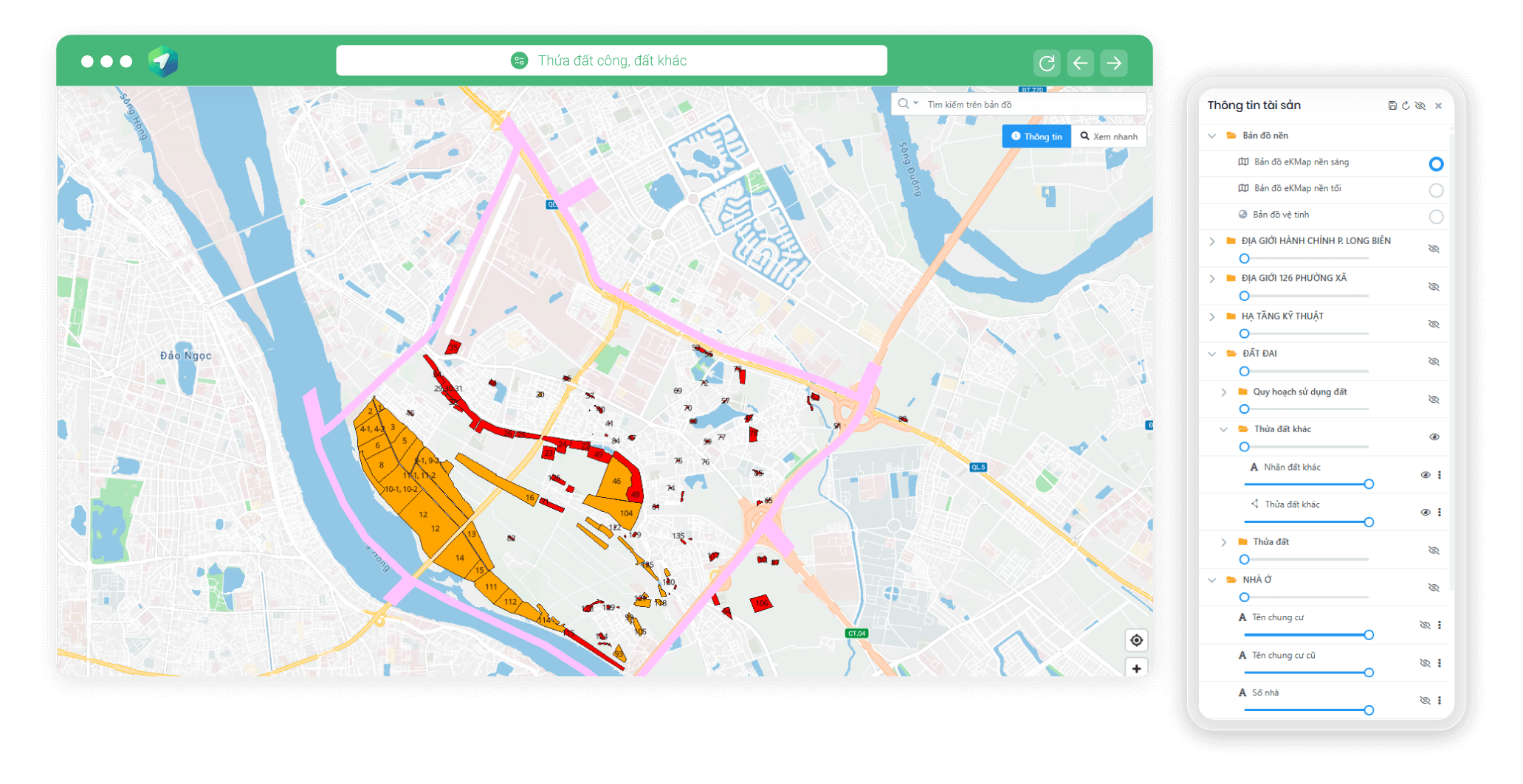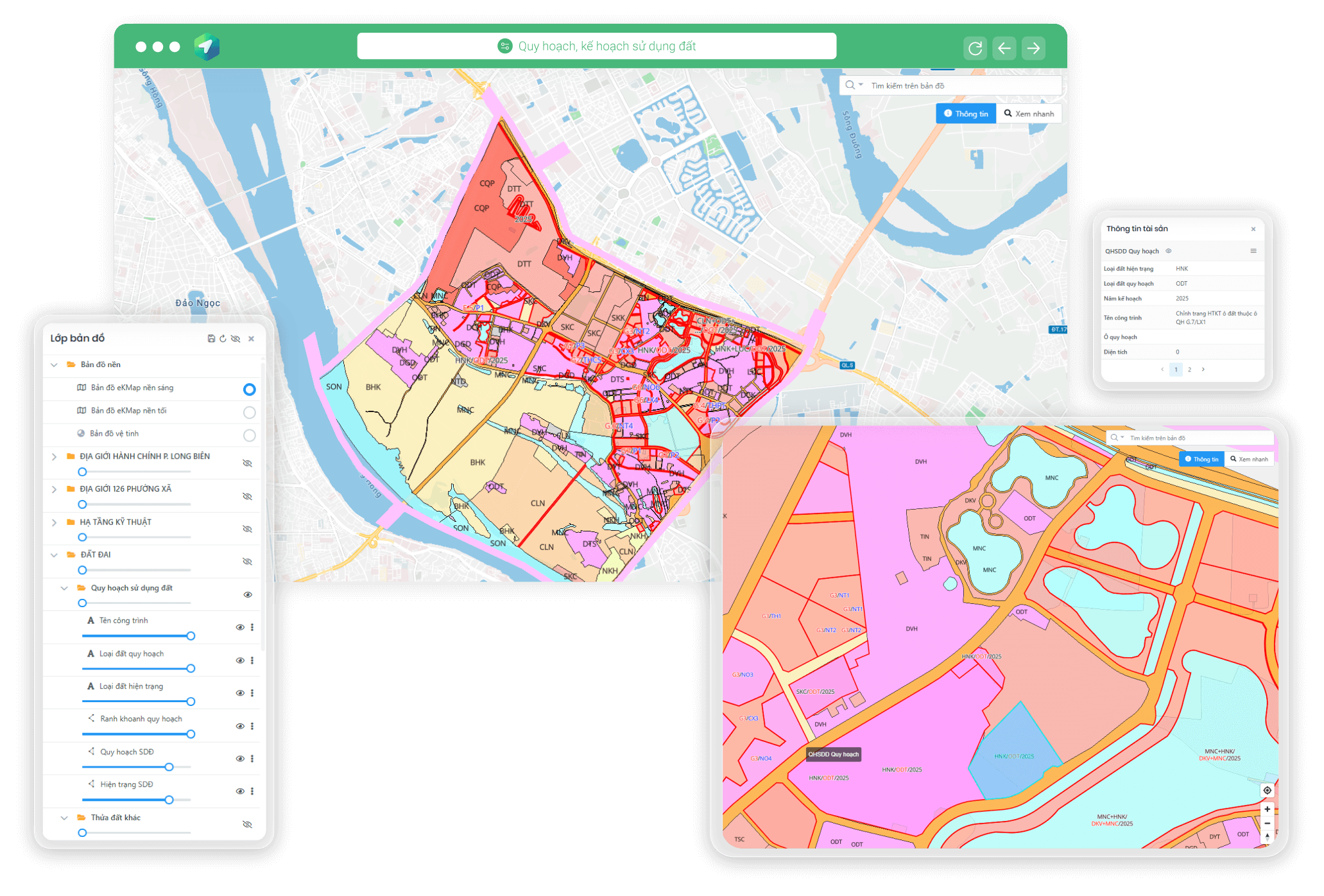 Cung cấp các chức năng hiển thị bản đồ, tra cứu, tổng hợp thông tin, in ấn - kết xuất bản đồ, ghi chú trực tiếp trên bản đồ để hỗ trợ ra quyết định và thực hiện công việc hiệu quả. Phần mềm hoạt động trên các trình duyệt web và có ứng dụng di động, đáp ứng nhu cầu sử dụng linh hoạt mọi lúc, mọi nơi.