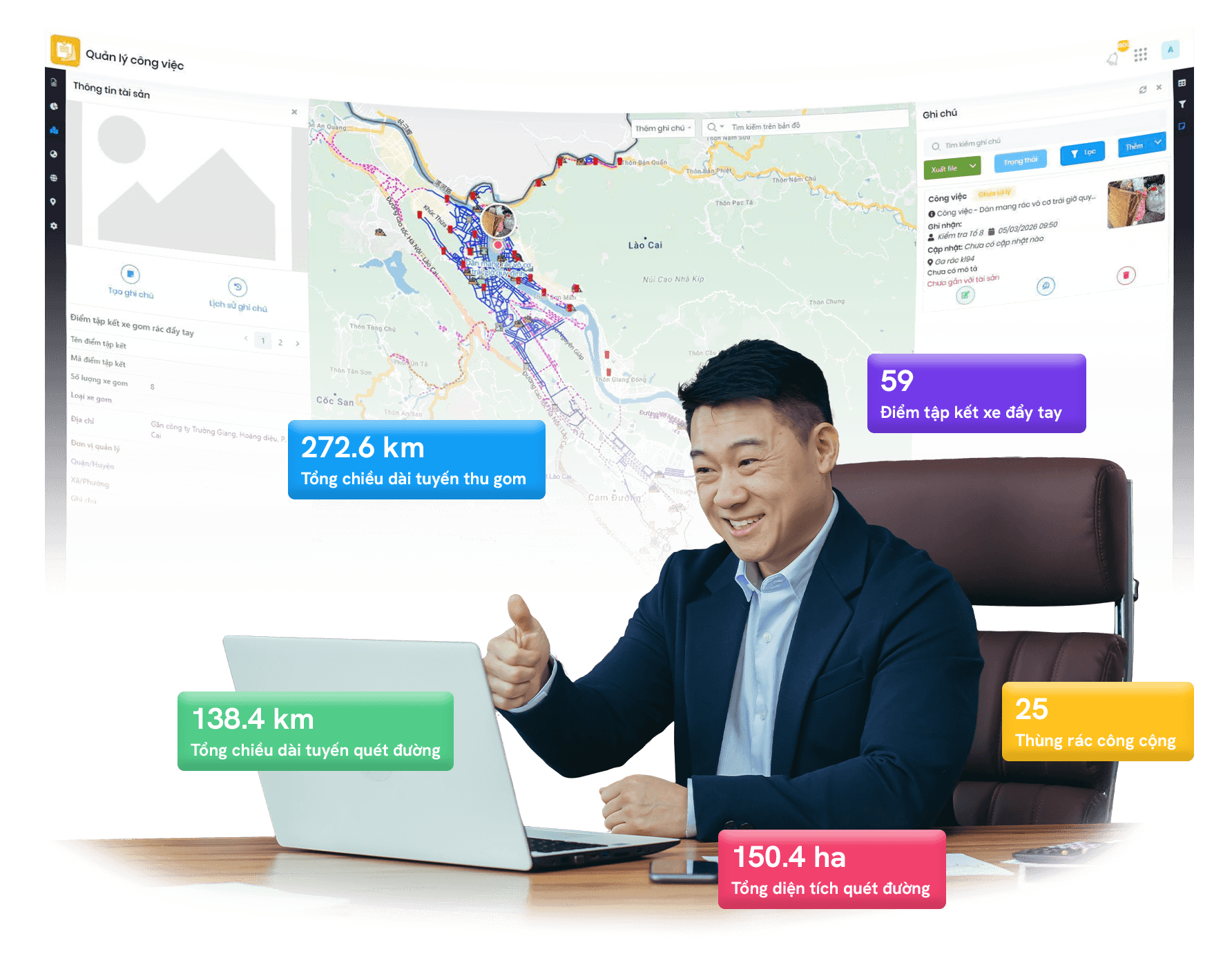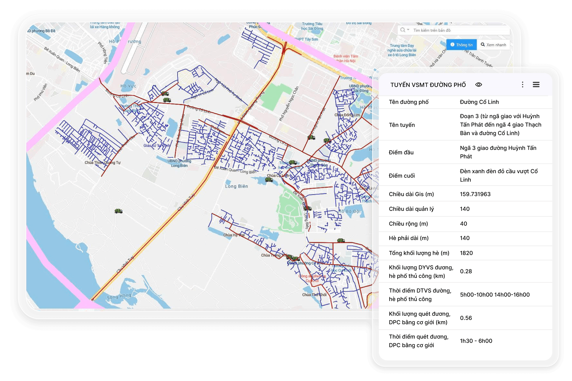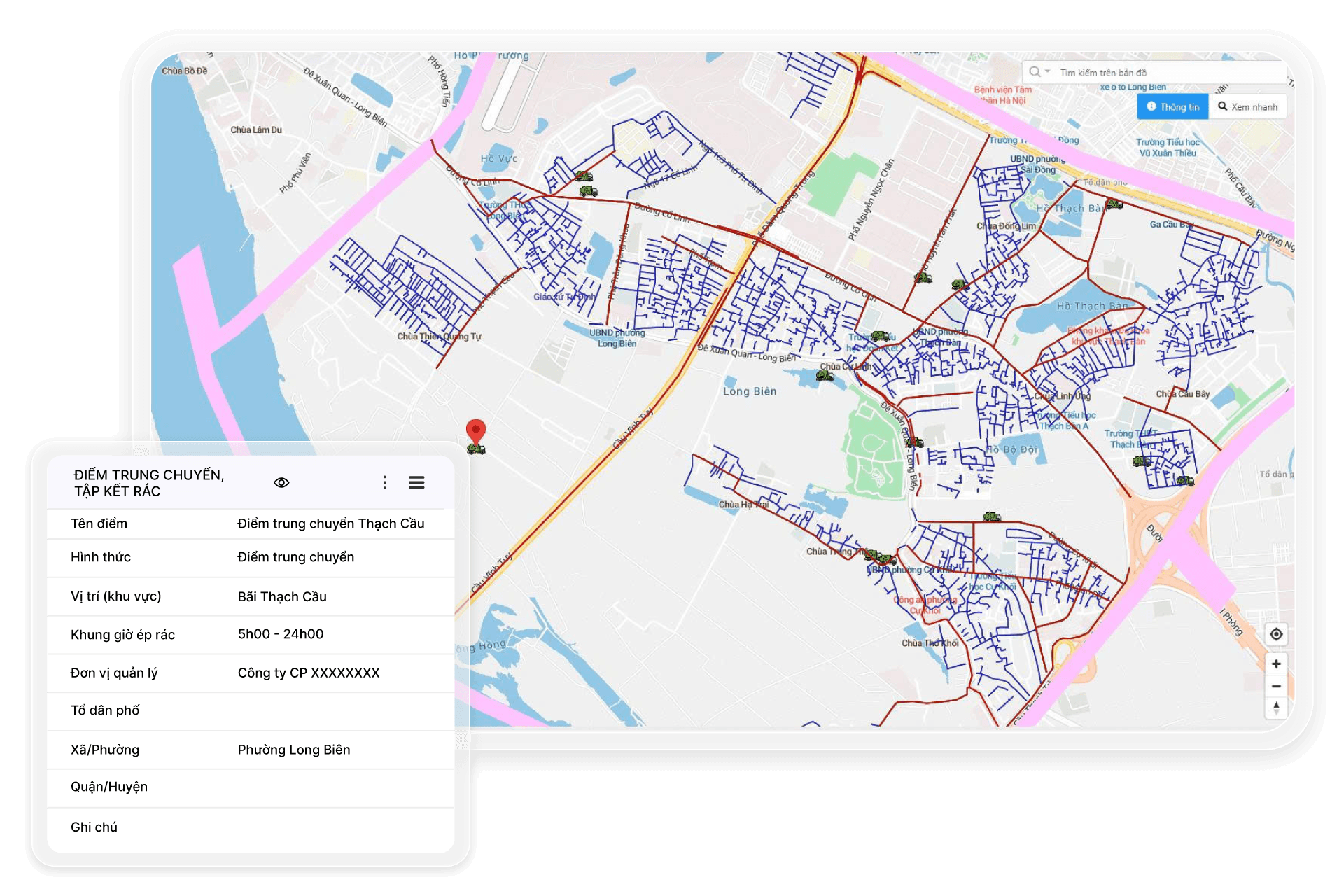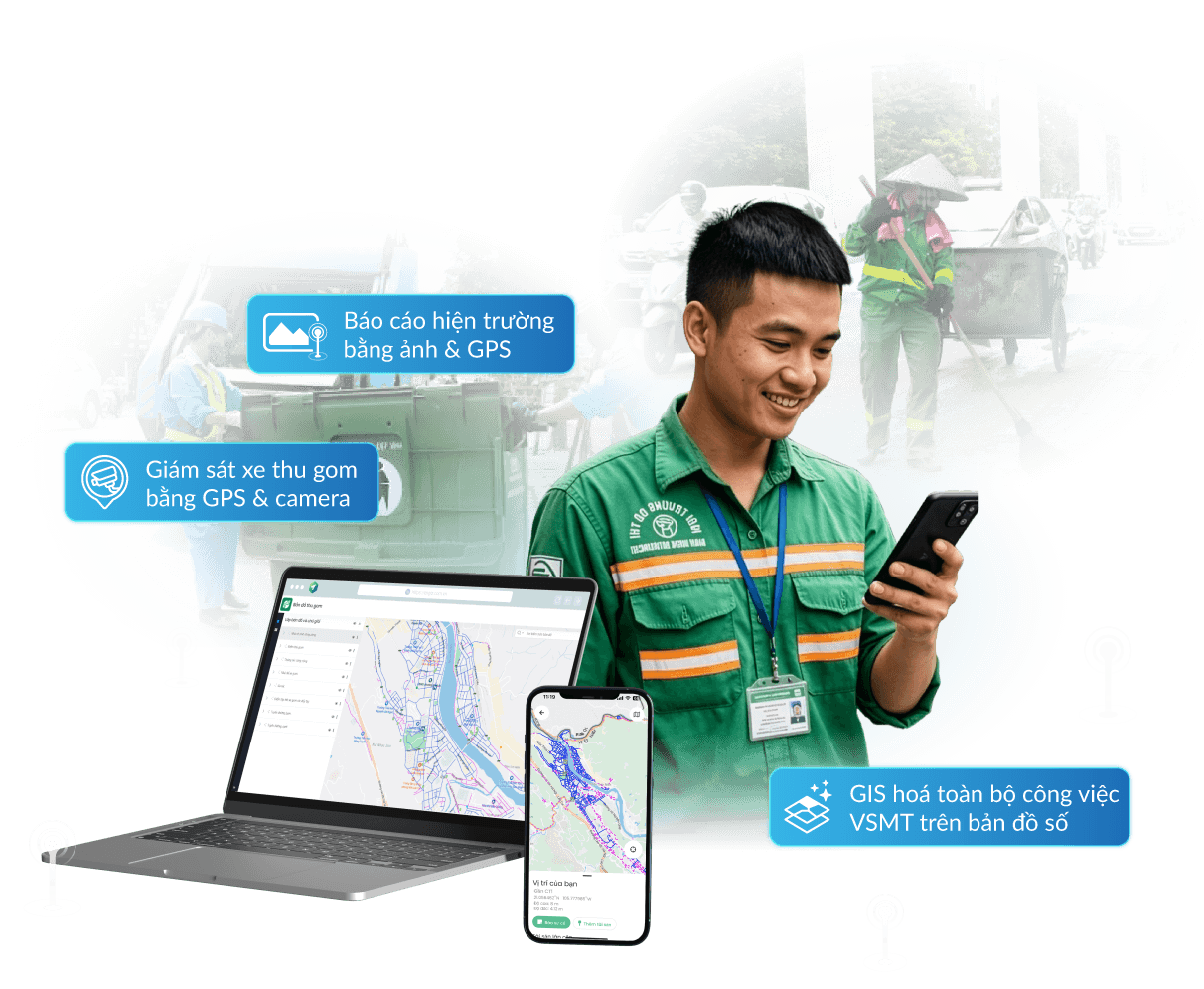 Là giải pháp dựa trên bản đồ và thông tin không gian địa lý, hỗ trợ các doanh nghiệp Vệ sinh môi trường chuyển đổi số công tác quản lý thu gom, vận chuyển rác thải và vệ sinh đường phố