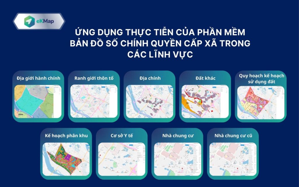 Giải pháp eKMap Solutions có khả năng ứng dụng trong rất nhiều lĩnh vực quản lý của chính quyền cấp xã/phường: