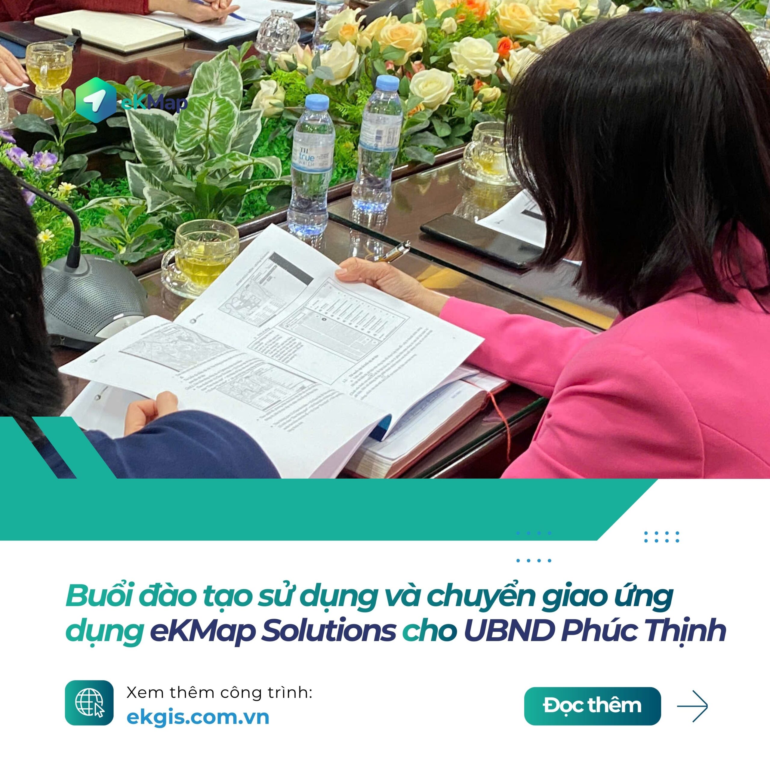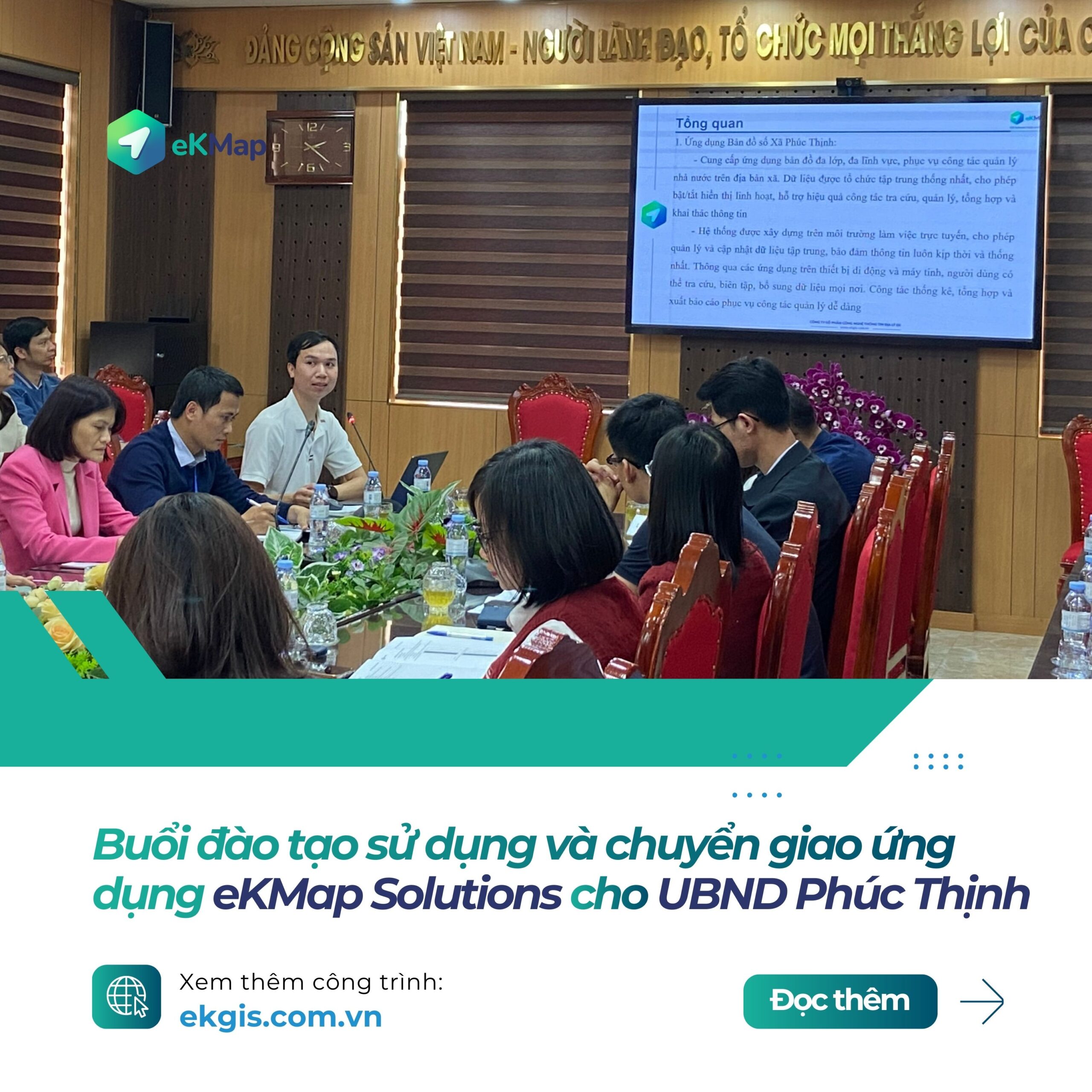 Song song với việc triển khai hệ thống, đội ngũ eKMap Solutions đã trực tiếp hướng dẫn, đào tạo và chuyển giao cách sử dụng ứng dụng cho cán bộ UBND xã Phúc Thịnh. Các nội dung tập trung vào: